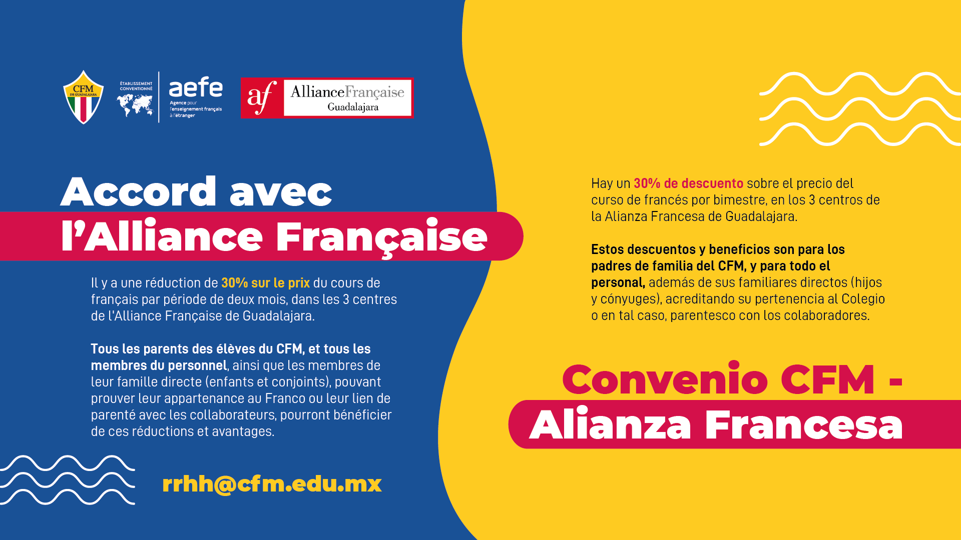 El CFM cuenta con un programa especial en la educación francesa, la Sección Deportiva, que detecta estudiantes con distintos talentos deportivos y adapta sus horarios de clases con las horas de entrenamiento. El programa PPES Programa Personalizado de estudiantes atletas de alto rendimiento para diversos deportes, y la práctica de futbol, gracias al convenio con el Club Deportivo Atlas –un proyecto único en su tipo en México – existe la Academia CFM-Atlas.