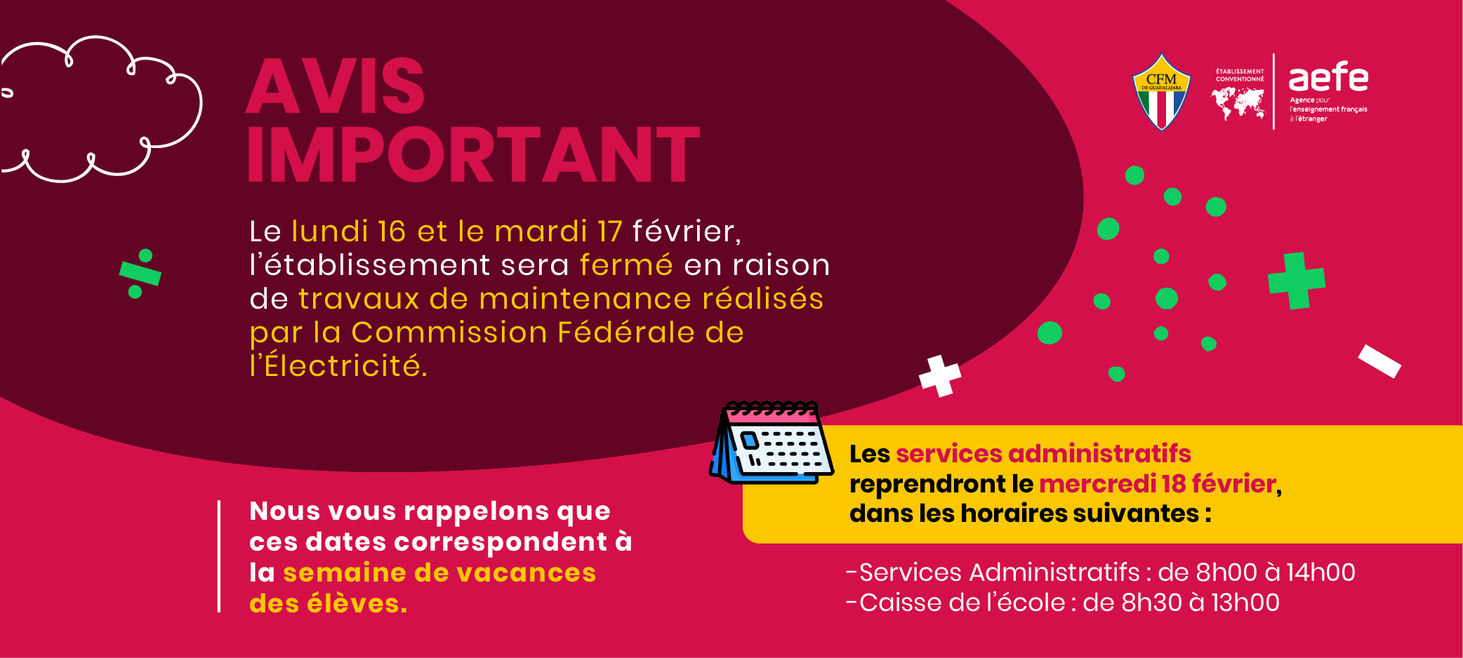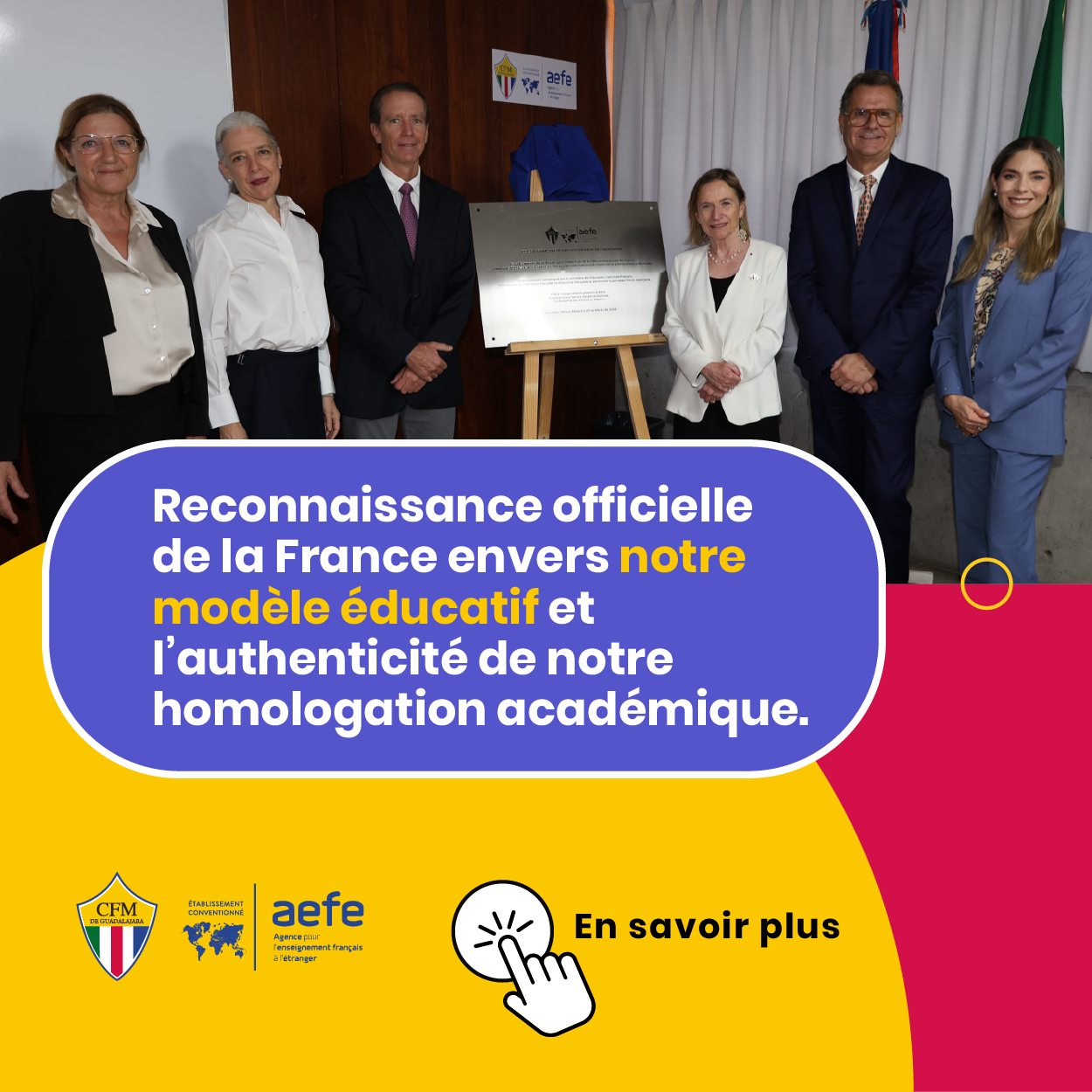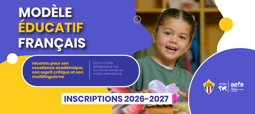 Le CFM est membre de l’AEFE : Agence pour l’Enseignement Français à l’Étranger, référence internationale de qualité, qui complète notre identité locale.